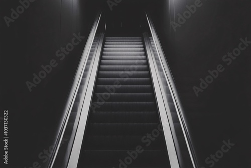 Empty Escalator in Black and White Modern Architecture Minimalism Interior Design