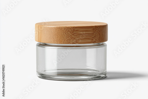 jar, glasses, container, wood, lid, empty, product, cosmetic, beauty, cream, storage, package, round, clear, bamboo, organic, natural, eco, friendly, minimal, design, blank, template, mock, up, presentation, studio, shot