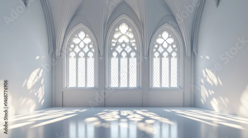 interior, gothic, window, light, empty, architecture, pale, white, room, wall, chapels, design, bright, shadow, space, illuminated, sunlight, floor, clean, modern, large, detail, perspective, minimalist, simple, pure, elegant, style, rendering, digital, illumination