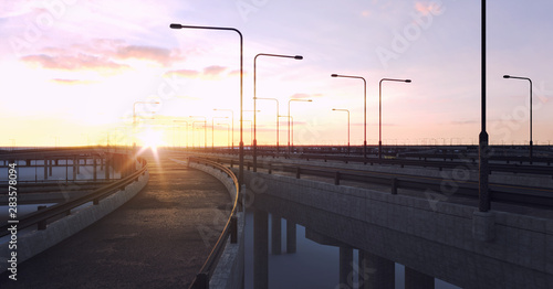 Empty highway, concrete road. 3D illustration.
