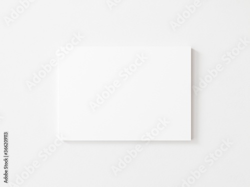 Empty horizontal canvas frame on white wall. 3d illustration.