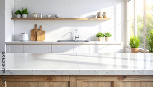 Empty Kitchen Counter with Clean White Surface, Bright Daylight, Minimalist Concept
