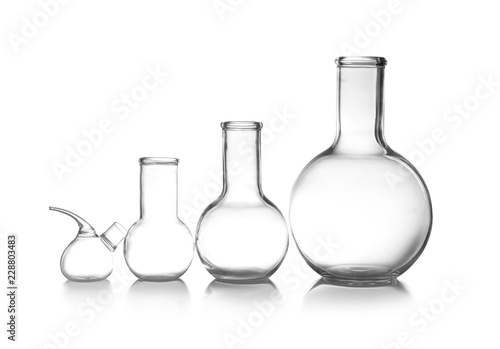 Empty laboratory glassware on table. Chemical analysis