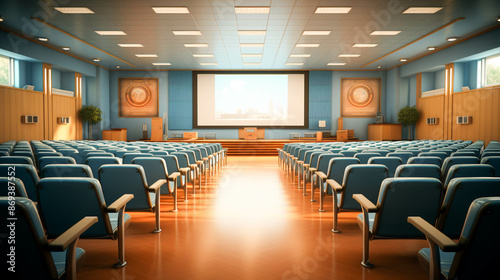 Empty lecture hall with modern projection equipment
