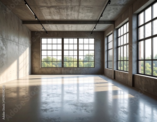 loft, space, interior, design, industrial, concrete, window, sunlight, empty, modern, architecture, room, large, roomy, open, daylight, urban, city, apartment, commercial, construction, vacant
