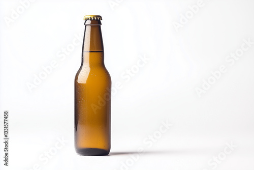 Empty logo bottle of beer isolated on white background, Selective focus amber glass bottle for lager on white background, Beverage bottle for commercial advertisement.