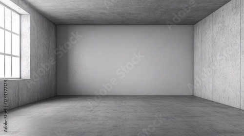 Empty Minimalist Room with Concrete Walls and Large Window, Modern Industrial Interior Design