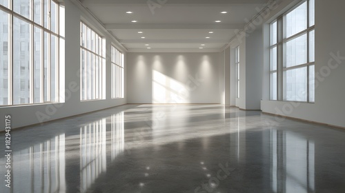 Empty modern hall warm floor minimal neutral wall clear daylight