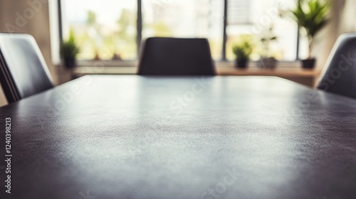 table, office, empty, chair, modern, desk, workspace, room, window, view, meeting, interior, business, workplace, clean, design, space, background, furniture, surface, cleanliness, professional, modernity, minimalist, simple, elegant, contemporary, neutral, bright, concept, texture, glossy, dark, smooth, grey, stone, wood, stylish, home, apartment, setting, product, presentation