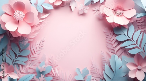Empty papercut nature icon surrounded by a delicate paper frame evoking the beauty of spring The design features soft pastel colors and intricate details inviting a sense of tranquility and renewal