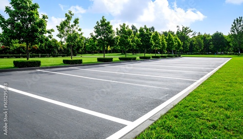 parking, lot, empty, park, green, tree, asphalt, grass, nature, exterior, summer, sunny, day, city, landscape, road, vehicle, vacant, clean, quiet, calm, scenic, paved