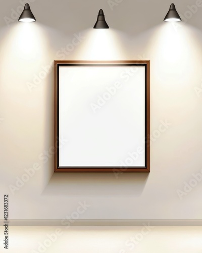 Empty Picture Frame on Wall with Spotlights Illuminating Artwork Space in Modern Gallery Interior for Creative Design or Architecture Projects