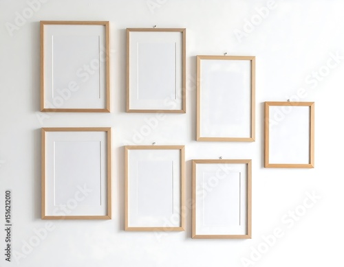 Empty picture frames on a white wall