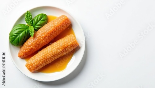 Empty plate with untouched food, pristine white background, pure, focus, weight loss