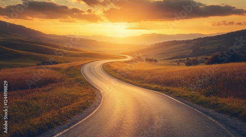 Empty Road Leading into the Sunset Light for Inspirational Journey Concepts