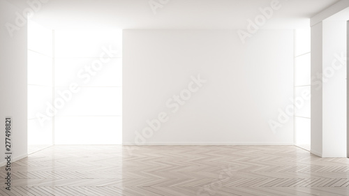 Empty room interior design, open space with white walls, modern style, parquet wooden floor, minimalist contemporary architecture, concept, mock-up, architecture idea