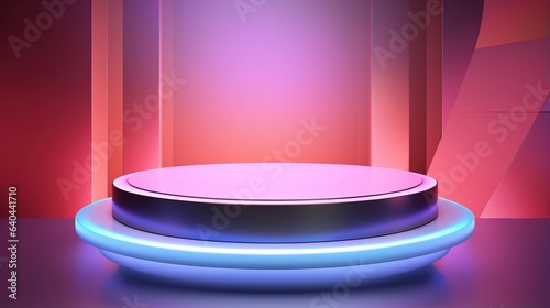 Empty stage with red curtains and spotlight, surrounded by clean white dinnerware and utensils