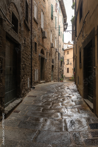 alley, architecture, calm, city, cobbled, cortona, day, empty, empty road, ground, historic, italy, landscape, outdoors, overcast, pavement, peaceful, quiet, rain, rainy, scenery, solitude, stone, street, tour tourism, town, travel, tuscany, urban, view, wet, wetness