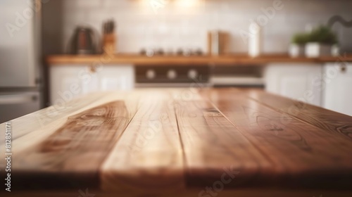 empty table board and defocused modern kitchen dining table background product display concept : Generative AI