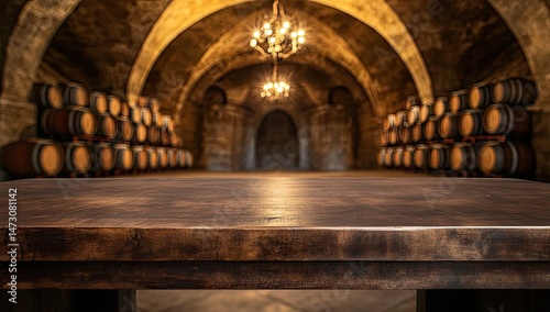table, empty, wood, dark, brown, cellar, wine, barrel, aged, historic, vaulted, stone, arch, light, rustic, interior, cool, ambience, vinification, storage, tradition, vintage, elegant, product, display, empty space, staging, still life, composition, wine tasting, wooden, dark brown, background, interior design, wooden table, wine cellar