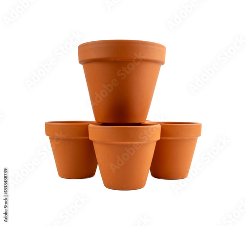 Empty terracotta flower pots, clay garden vase, brown ceramic plant container, garden pottery earthenware