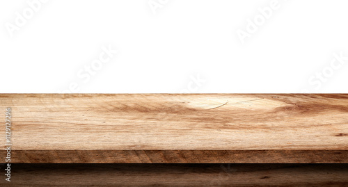 Empty top wood table isolated on white background used for display or montage your products