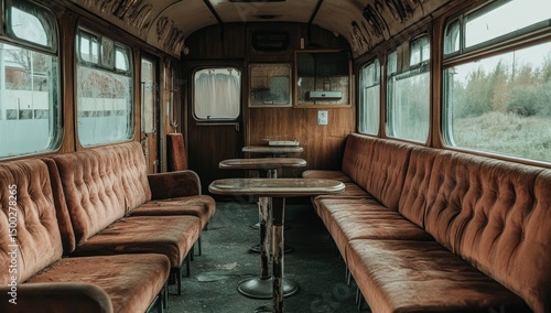 train, interior, vintage, retro, empty, brown, upholstery, seat, table, car, wooden, window, rustic, decay, abandoned, cafes, passenger, travel, cosy, comfort, space, dim, light, detail, table, design, furniture, railroad, journey, classic, atmosphere, nostalgia, relaxation, observation, seating, transport, perspective, room, departed, history, decaying, old