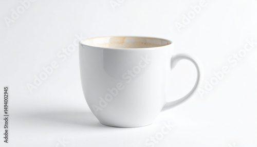 mug, hot drink, empty, cup, white, ceramic, tea, drink, porcelain, clean, simple, isolated, studio, background, light, smooth, design, round, handle, beige, stain