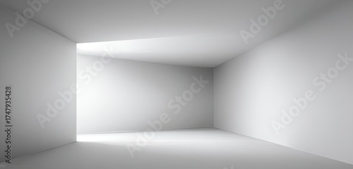 empty, white, room, light, perspective, geometric, architecture, modern, minimalist, interior, design, space, abstract, studio, clean, simple, monochromatic, illumination, bright, directional, sunlight, evacuated, corner, wall, floor, ceiling, architectural, empty space, light rays, spotlight, monochrome, photo, digital, rendering, three-dimensional, view, interior design, conceptual
