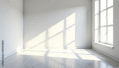 Empty white room with natural light pouring in through a large window, white, Scandinavian