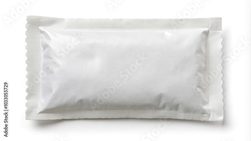 Empty white sachet isolated on white background