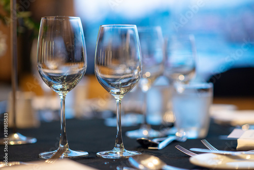 empty wine glass prepare on fine dining table