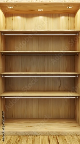 wooden, closet, shelf, hanger, rail, empty, storage, interior, design, room, furniture, wood, background, minimal, modern, home, house, clean, simple, organised, white, light, bright, new, tidy, neat, space, three-dimensional, render