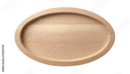 Empty wooden plate isolated on transparent background. Top view.