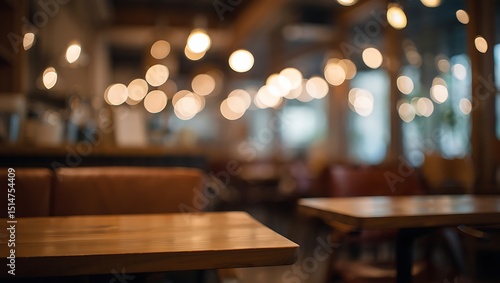cafes, eatery, hot drink, shop, table, wooden, empty, bokeh, light, blurred, background, warm, cosy, atmosphere, interior, design, food, photo, product, placement, texture, wood, brown, vintage, modern, stylish, night, evening, relaxing, comfortable, tabletop, surface