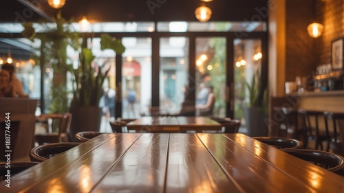 atmosphere, background, bar, bistro, blurry, bokeh, business, cafes, casual attire, chair, commercial, comfortable, contemporary, cosy, decor, design, dining, empty, foreground, furniture, indoor, interior, inviting, lighting, modern, no people, out of focus, eatery, seating, style, table, unoccupied, urban, upscale, warm light, window, wooden table, wood