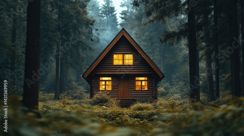 cabin, forest, wood, tree, night, bungalow, home, house, log cabin, wooden, dark, mysterious, serene, peaceful, tranquil, magical, enchanted, cosy, comfort, rustic, nature, landscape, illuminated, window, light, warm, glowing, atmosphere, evening, silhouette, solitude, escape, retreat, shelter, wildlife, haven, seclusion, privacy, countryside, rural