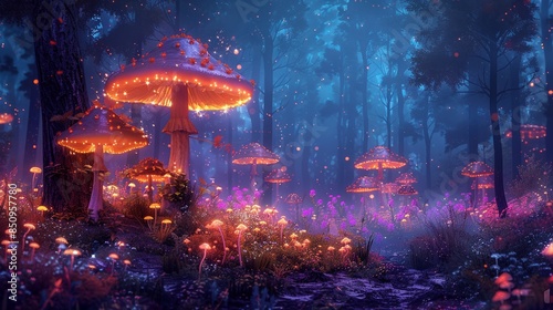 Enchanted Forest: Glowing Mushrooms and Magical Atmosphere