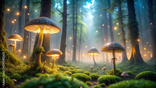 forest, mist, glowing, eerie, mushroom, nature, mystical, magical, mushroom, fungal, autumn, fungal, grass, toadstool, macro, green, moss, food, brown, cap, plant, wild, season, white, natural, wood, closeup, edible, closeup, fall