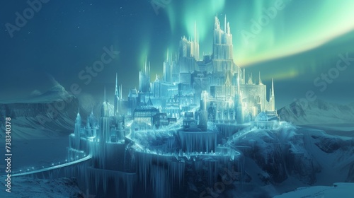 Enchanted Ice Castle under Northern Lights in a Fantasy Landscape