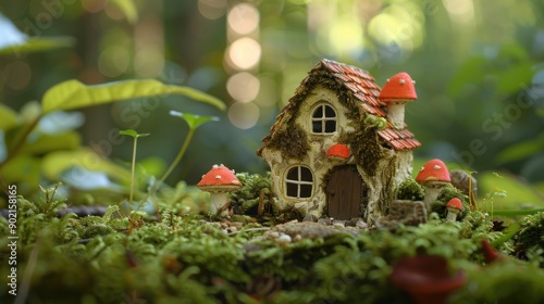 miniature, bungalow, forest, fairy, house, tiny, garden, magical, enchanted, fantasy, nature, green, moss, mushroom, red, cute, adorable, timberland, leaf, scene, diorama, photo, art, craft, creative, artistic, model, earth, miniature, fairy tale, storybook, imagination, dream, detail, whimsical, charming, rustic