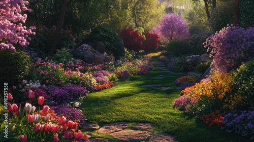 Enchanted Spring Garden Path: A Walk Through Blooming Beauty
