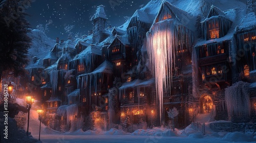 building, architecture, winter, snow, night, icicle, glacé, cold, light, window, village, town, house, street, snowy, dark, illuminated, fairy tale, magical, enchanting, christmas, holiday, cosy, rustic, old, historic, stone, wood, mountain, landscape, scenery, beautiful, amazing, breathtaking, serene, peaceful, tranquil, calm, still, quiet, solitude, mystery, secret, hidden, atmosphere, mood, feeling, emotion
