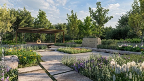 render, peace, residential, meditation, ornamental, relaxing, property, landscaping, tranquil, estate, oriental, path, contemporary, luxury, yard, lush, lawn, step, japan, patio, japanese, lantern, plant, gardening, pool, villa, waterfall, duck pond, scene, stone, backyard, fish, deck, terrace, shrub, illustration, rock, concrete, with, blooming, home, modern, red, exterior, bush, bridge, style, flowerbed, house