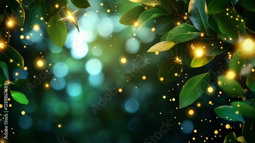 Enchanting nighttime glow of nature captivating leafy canopy magical forest beautiful bokeh serene atmosphere artistic perspective dreamlike essence