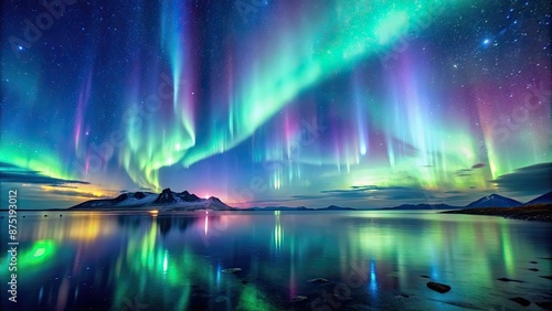 Enchanting view of the Aurora Borealis dancing in the night sky over a shimmering sea of stars, Aurora Borealis