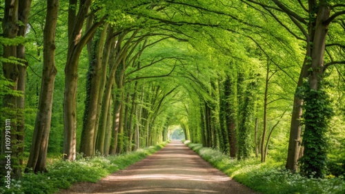 Enchanting Walkway in a Lush Spring Beech Forest in Leuven, Belgium - A Natural Tunnel for Eco Tourism and Environmental Conservation