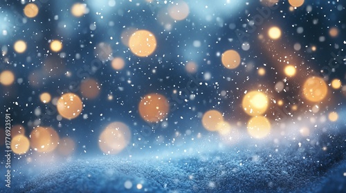Enchanting winter snowfall with bokeh lights creates a magical, festive atmosphere perfect for holiday greetings and seasonal promotions, so inviting!
