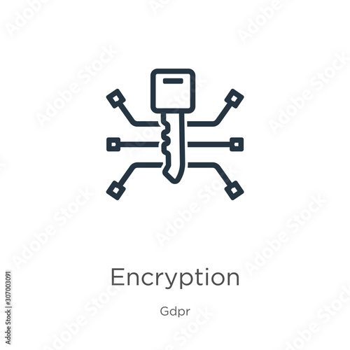 Encryption icon. Thin linear encryption outline icon isolated on white background from gdpr collection. Line vector encryption sign, symbol for web and mobile