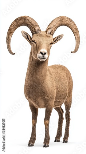 Endangered species rehabilitation conservation wildlife rescue. A realistic depiction of a ram, showcasing its prominent horns and textured fur, standing against a plain background.